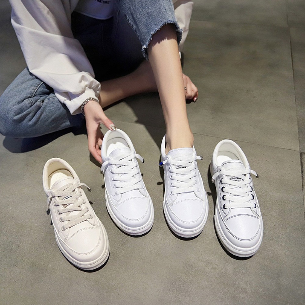 Spring White Shoes Female Students Running Board Shoes Lace-Up Flat-Bottom Breathable Casual Shoes Women