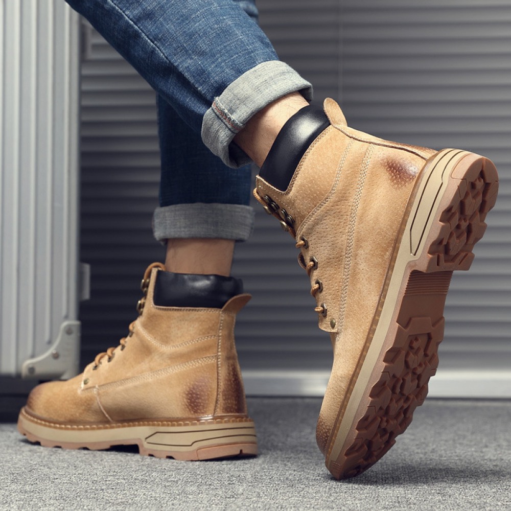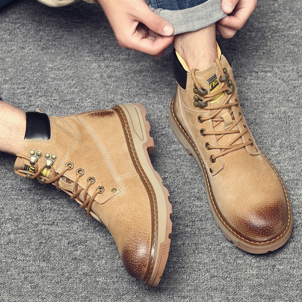 Men's Shoes Autumn and Winter New High-Top Boots Trend Tooling Military Boots British Martin Boots Men's Trendy Mid-Top