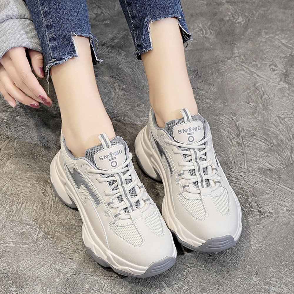 Women's New Autumn Trendy Shoes Breathable Thick-Soled Increased Mesh Surface Sports and Leisure Women Shoes