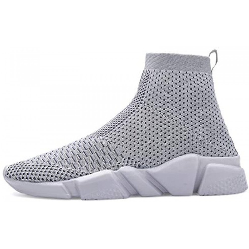 Womens Walking Shoes Mens Slip-On Sneakers Breathable Lightweight Athletic Running Shoes High Top All Gray
